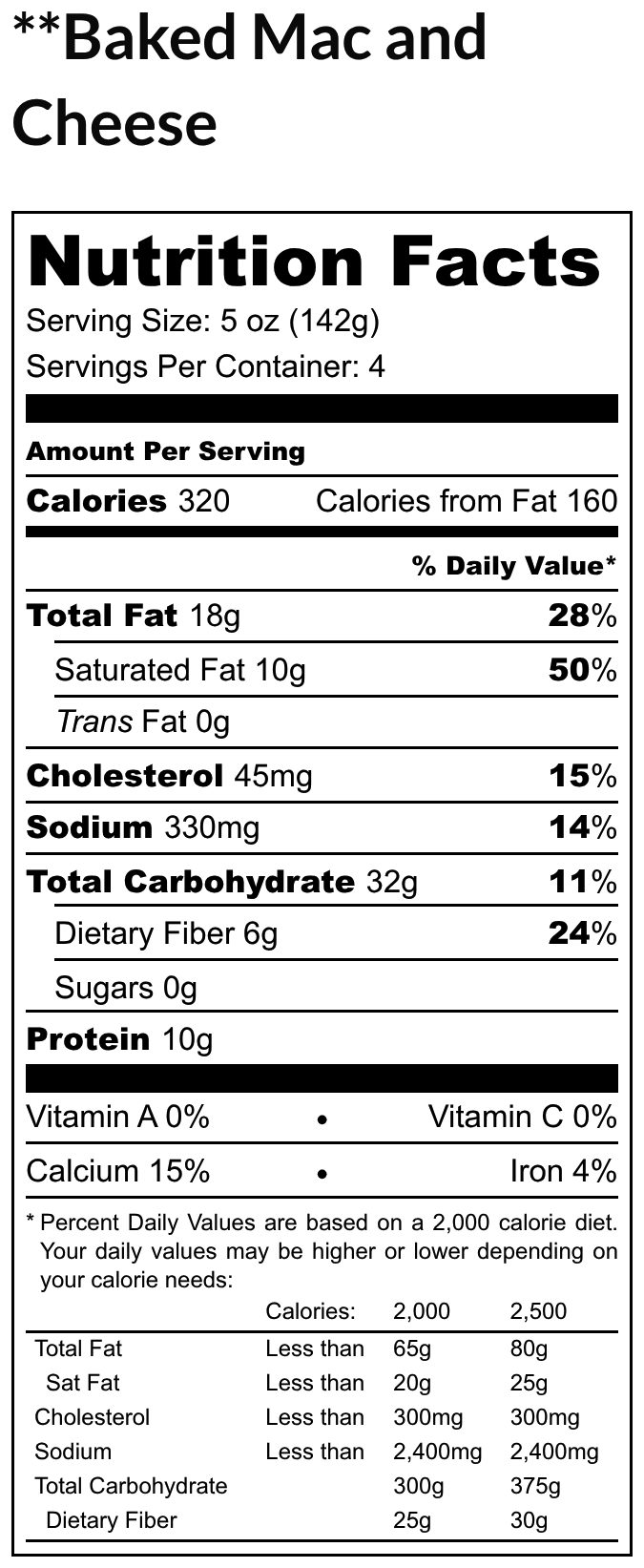 Macro Counts: 320 calories, 18g fat, 32g carbs, 10g protein