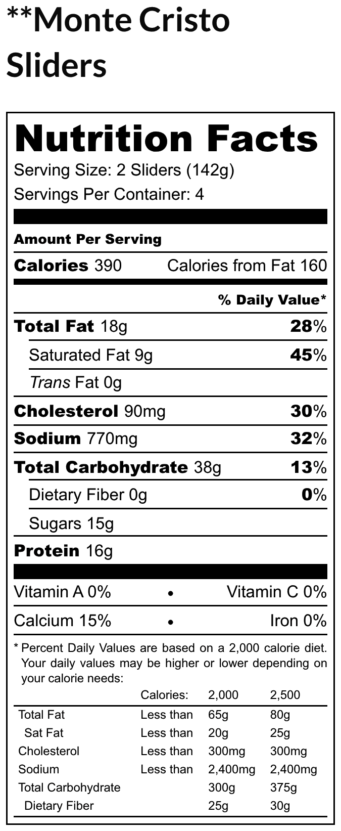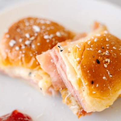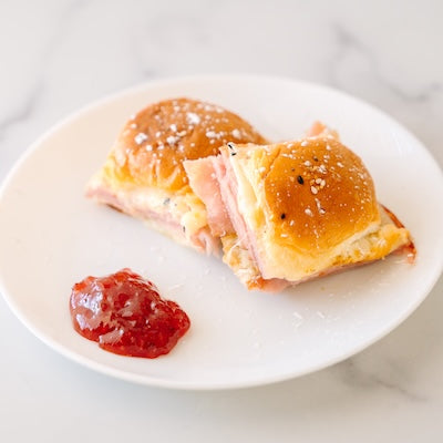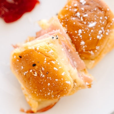 Indulge in the perfect balance of savory and sweet with our Monte Cristo Sliders. These handheld delights combine tender ham and melted Swiss cheese between soft slider buns, then finished with a dusting of powdered sugar and a drizzle of berry jam (if you'd like!). Each bite delivers that irresistible contrast—crispy exterior giving way to juicy, flavorful layers that satisfy both your savory cravings and sweet tooth.