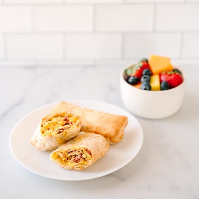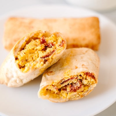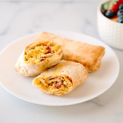 A perfectly balanced breakfast when protein-packed eggs meet savory bacon and cheddar cheese all wrapped in a flour tortilla. Great for a quick breakfast on the go: just grab one from the freezer and microwave for 1-2 minutes. Or, bake in the oven for a crispier finish.