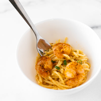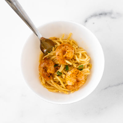 Ingredients: Shrimp, Spaghetti (durum wheat flour semolina), Mayonnaise (soybean oil, vinegar, eggs, water, salt, egg yolks, sugar, dried garlic, dried onions, natural flavors), Sweet Chili Sauce (sugar, water, distilled vinegar, chili paste (chilies, salt, distilled vinegar, potassium sorbate), salt, dried garlic, xanthan gum, red pepper, potassium sorbate), Avocado Oil, Garlic, Sriracha, Lime Juice, Paprika, Sea Salt, Black Pepper, Parsley
