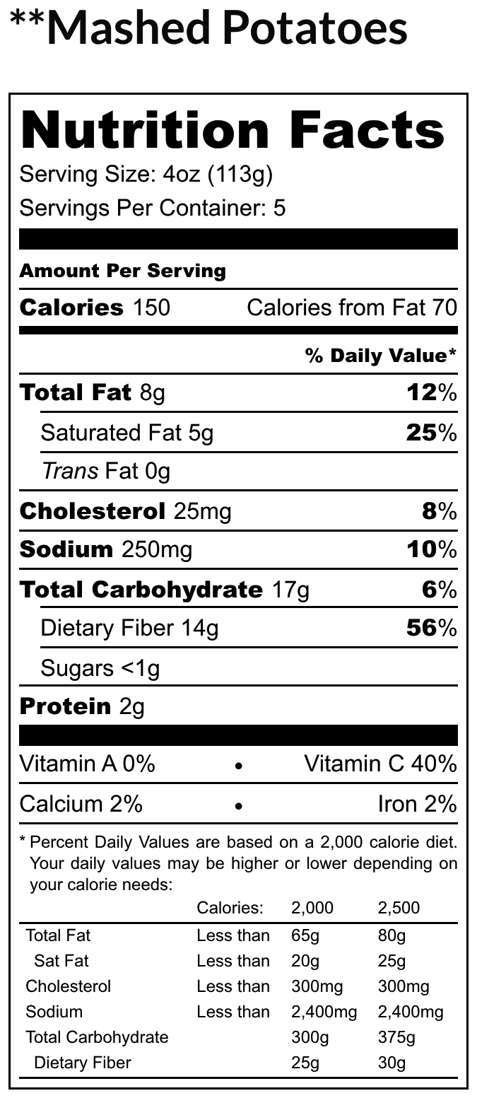 Each package contains 20 oz of mashed potatoes and is packaged in a foil pan.