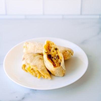 If you prefer all the breakfast burrito goodness but without the egg, our shipwreck breakfast burritos are for you! We took a page from the classic cafe breakfast dish - sausage, hashbrowns, peppers, and onions - all rolled up in a tortilla ready to heat and eat for breakfast on the go. This burrito has so much flavor and cheesy goodness, we promise you won't miss the egg!